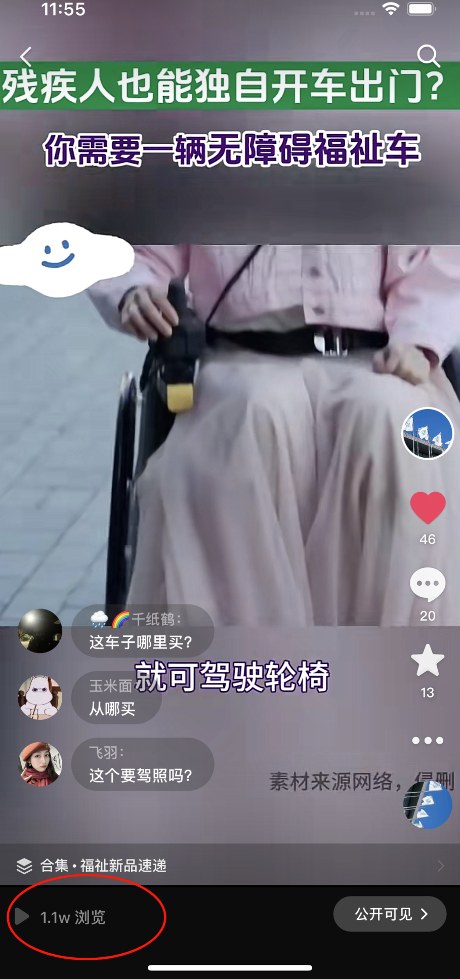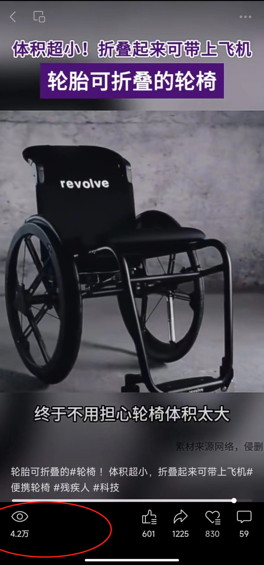 產(chǎn)品案例:近期,折疊輪椅、福祉車等新產(chǎn)品在福祉視頻平臺(tái)發(fā)布后,產(chǎn)品類目的播放量直線提升,討論度火熱,短時(shí)間內(nèi)收獲20+來自B端、C端的詢價(jià)。
