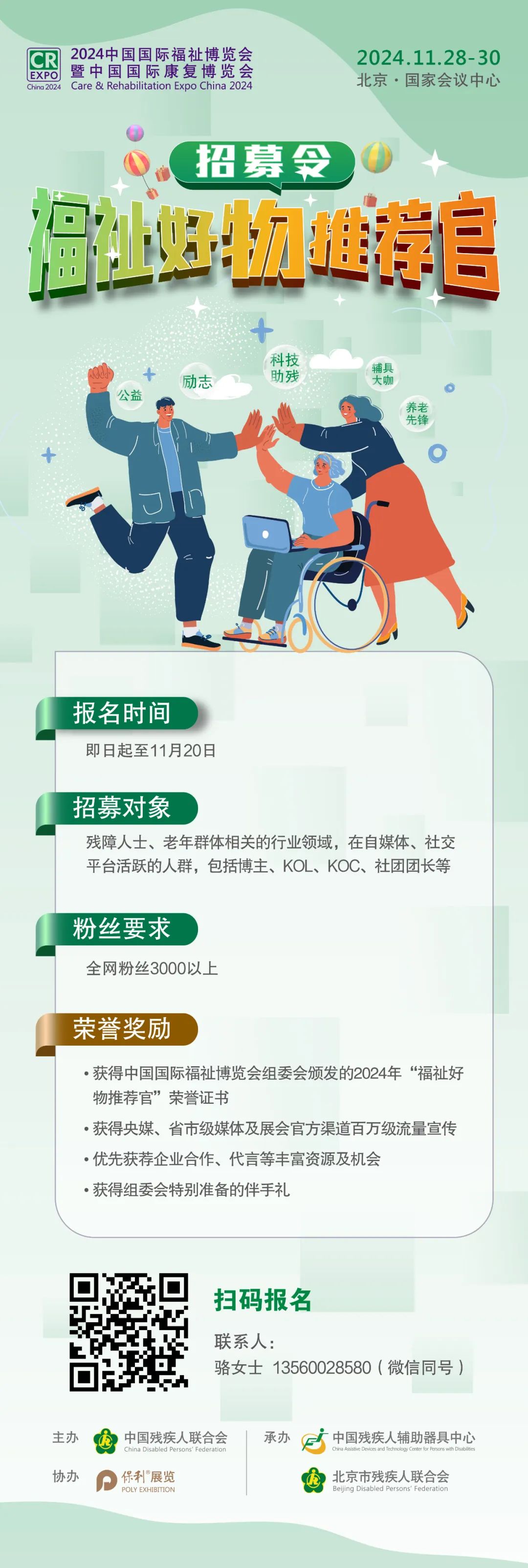 招募范圍:殘障人士、老年群體相關(guān)領(lǐng)域,如助行移動(dòng)、老年輔具、假肢及矯形器、低視力/聽覺言語康復(fù)、無障礙生活、特殊教育、兒童康復(fù)等