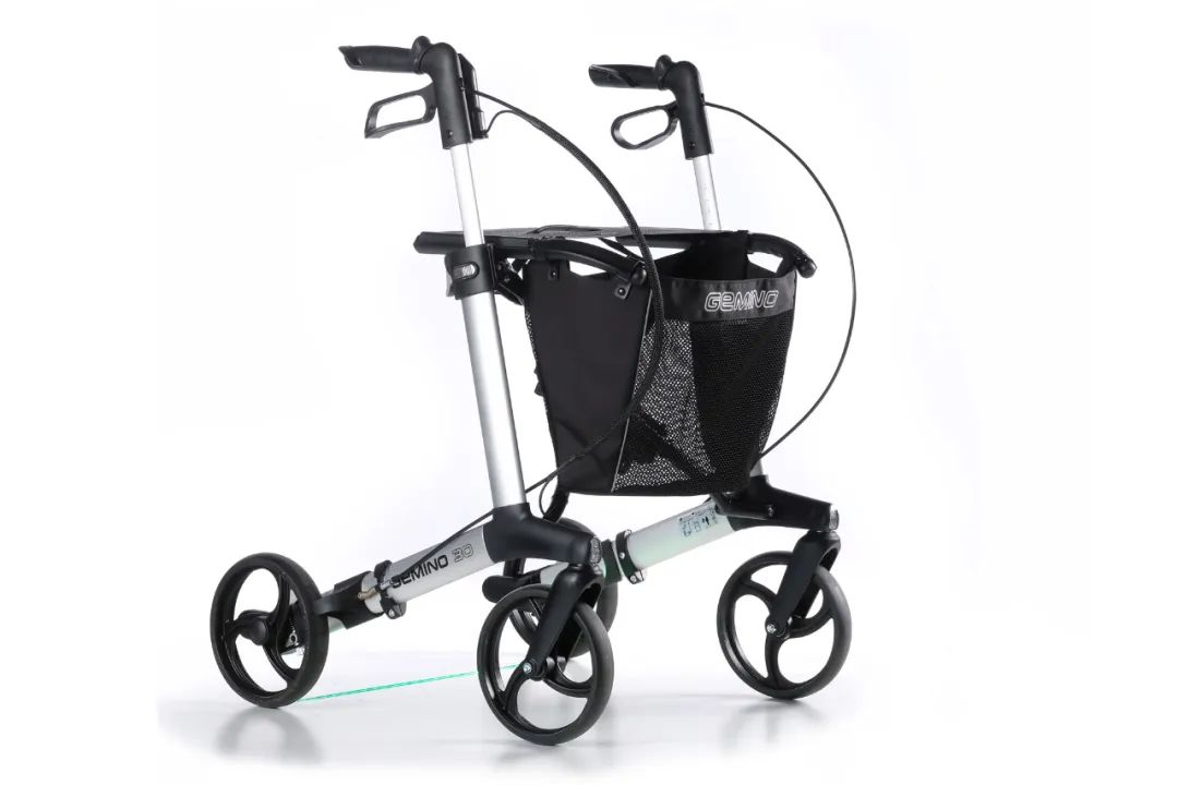 Gemino 30 帕金森杰出特征是反向剎車系統(tǒng)。一旦松開剎車,助步車就會(huì)立即停止移動(dòng)。如果在走路時(shí)發(fā)生“步態(tài)凍結(jié)” (感覺腳像被粘在了地上), 那么這臺(tái)車就增加了行進(jìn)中的安全性??筛鶕?jù)使用者的具體需要調(diào)整所需阻力級(jí)別,提供額外的阻力,幫助使用者以穩(wěn)定的步伐行走。配有鐳射激光設(shè)置,投射至地面的激光線,可協(xié)助帕金森患者從步態(tài)凍結(jié)的狀態(tài)中重啟步伐。借由推車手柄上的按鈕啟動(dòng)鐳射激光功能,帕金森患者透過注視地面上的激光線并跨過它,便能繼續(xù)行走。