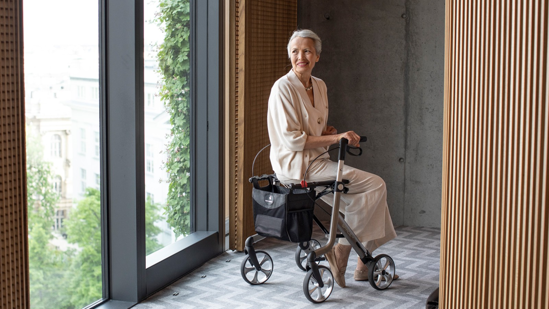 瑞格-賽貝斯的整車造型簡潔大方,人字型的高強度鋁合金邊框,結(jié)實耐用。小而輕巧的設(shè)計使它在室內(nèi)外都能輕松自如地行走、升降和轉(zhuǎn)彎。多種顏色可選,有低調(diào)素雅的灰色,經(jīng)典耐看的金色和時尚亮眼的藍色,滿足不同用戶的需求。標準配置包含靠背帶和拐杖支架,還有很多配件供選擇。