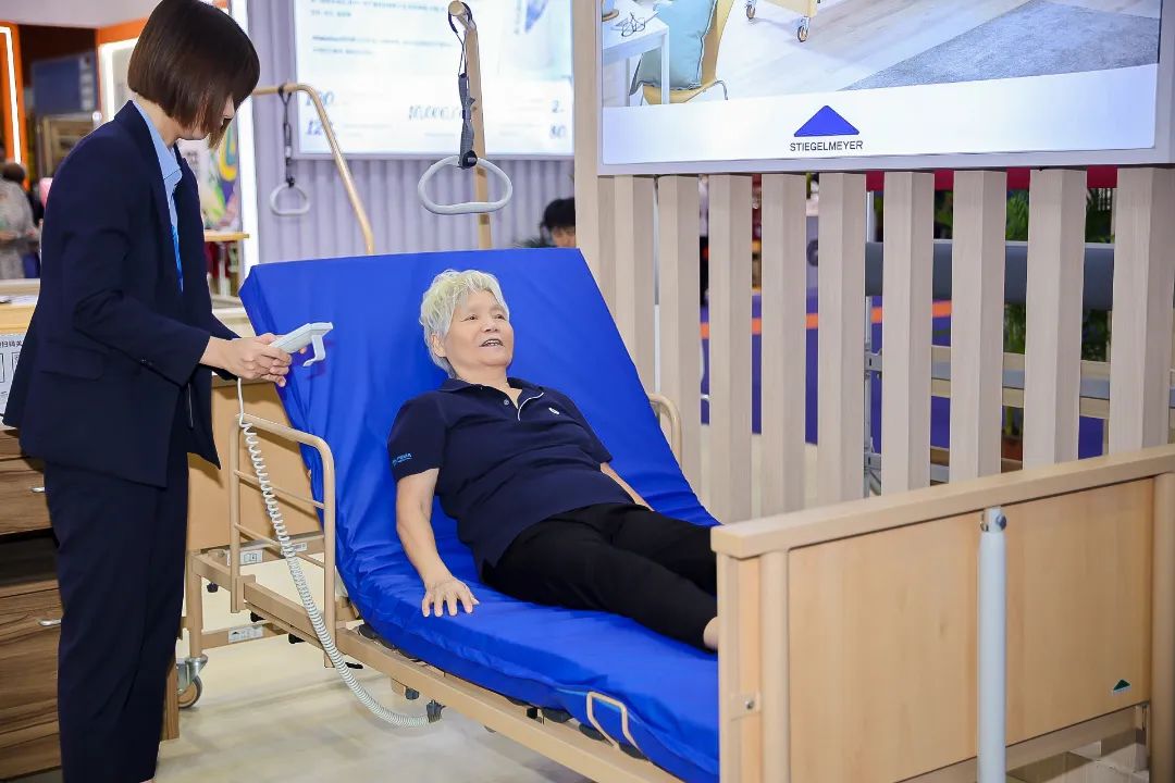 可升降的電動護理床、洗浴床,輕松實現(xiàn)轉(zhuǎn)移的移位機,防褥瘡坐墊、床墊,成人紙尿褲,長者陪伴機器人……方便日常照護。
