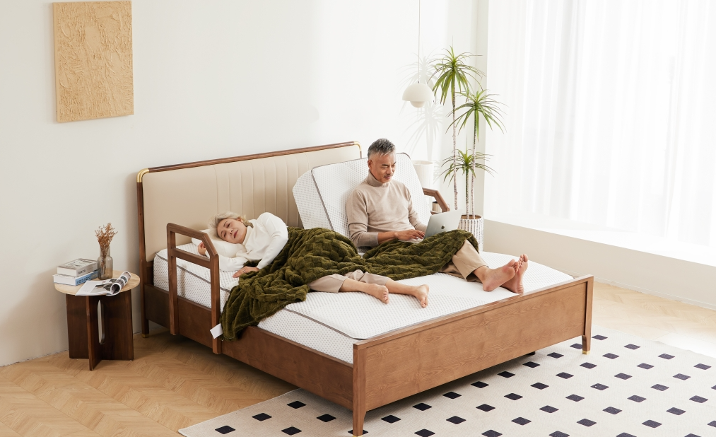 舒眠H921屬于適老化電動(dòng)床,單人1.2米寬度尺寸,更加舒適。具備背部升降、腿部升降和整床升降,可滿足老人日常起居,方便上下床;以及后期處于護(hù)理階段,也方便家人照護(hù)。兩側(cè)扶手,便于抓握和儲(chǔ)物,后期根據(jù)老人需求,也可升級(jí)長(zhǎng)護(hù)欄。