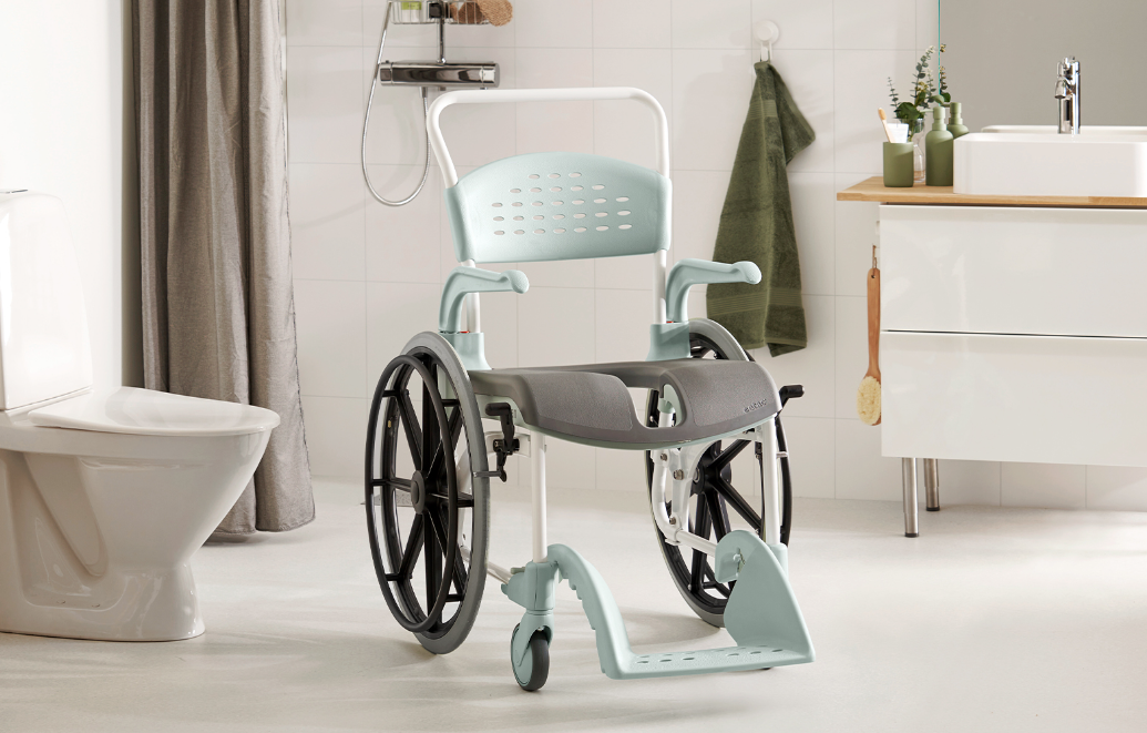 Etac Clean 24"是一款自推型的移動(dòng)式浴廁多功能椅,操作方便,適合那些能獨(dú)立操作椅子進(jìn)衛(wèi)生間并渴望獨(dú)自完成沐浴坐便需求的人使用。它兼具洗澡椅、坐便椅、馬桶增高椅和室內(nèi)輪椅四合一的功能特點(diǎn),整體車架一根鋼管設(shè)計(jì),無任何焊接,保證了在浴室環(huán)境中不被腐蝕和氧化。Etac Clean的大車身設(shè)計(jì),使用者可以利用它來方便的完成空間轉(zhuǎn)移的需求。