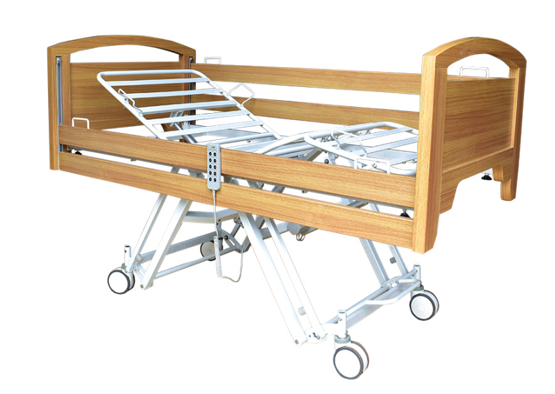 五功能電動(dòng)護(hù)理床,功能齊全,全面護(hù)理臥床患者,有起背,抬腿,高度調(diào)節(jié),床體前傾和后傾這五種功能,使日常護(hù)理更為便捷。木質(zhì)床頭尾板和護(hù)欄設(shè)計(jì)體現(xiàn)家居化,更舒適,更溫馨,搭配靜音萬向腳輪使用更方便。