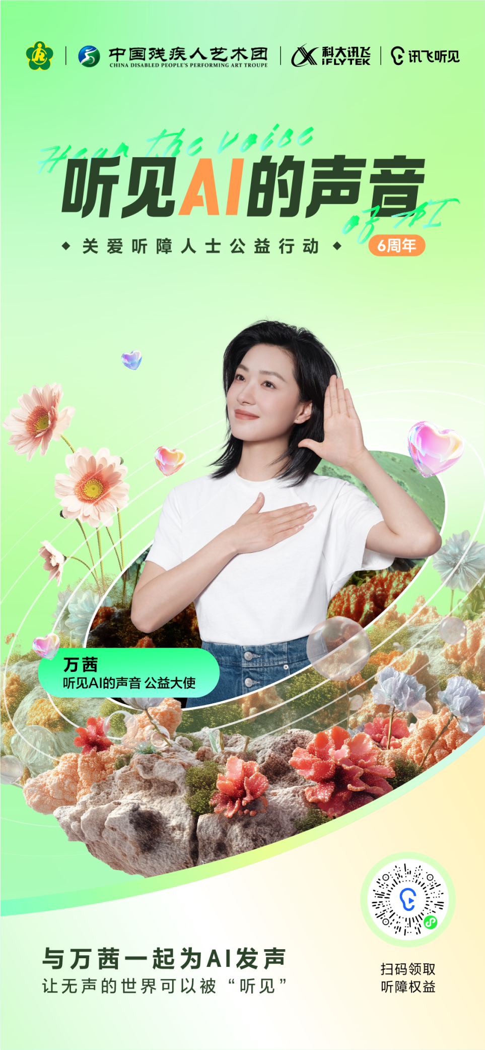 科大訊飛聯(lián)合中國(guó)聾協(xié)、中國(guó)殘疾人藝術(shù)團(tuán)于2019年5月19日,全國(guó)助殘日正式發(fā)起“聽(tīng)見(jiàn)AI的聲音”關(guān)愛(ài)聽(tīng)障人士公益項(xiàng)目。由訊飛聽(tīng)見(jiàn)作為承辦方,基于訊飛聽(tīng)見(jiàn)APP、訊飛同傳等系列智能語(yǔ)音轉(zhuǎn)寫(xiě)產(chǎn)品,線(xiàn)上線(xiàn)下聯(lián)合互動(dòng)。將他人所述語(yǔ)言實(shí)時(shí)轉(zhuǎn)寫(xiě)成文字,幫助聽(tīng)障人士在日常社會(huì)生活中與他人無(wú)障礙交流、理解意思,更好地融入社會(huì),實(shí)現(xiàn)價(jià)值。該公益項(xiàng)目邀請(qǐng)到著名影視演員萬(wàn)茜擔(dān)任公益大使,2025年科大訊飛攜手央視春晚,為央視春晚無(wú)障礙轉(zhuǎn)播提供實(shí)時(shí)字幕,讓全國(guó)觀眾得以同頻歡樂(lè)。今年是“聽(tīng)見(jiàn)AI的聲音”6周年,截至目前聽(tīng)障認(rèn)證提交用戶(hù)近10萬(wàn)人,項(xiàng)目已累計(jì)為聽(tīng)障群體定向捐贈(zèng)時(shí)長(zhǎng)超2億分鐘,成為大家工作、生活的AI助手。