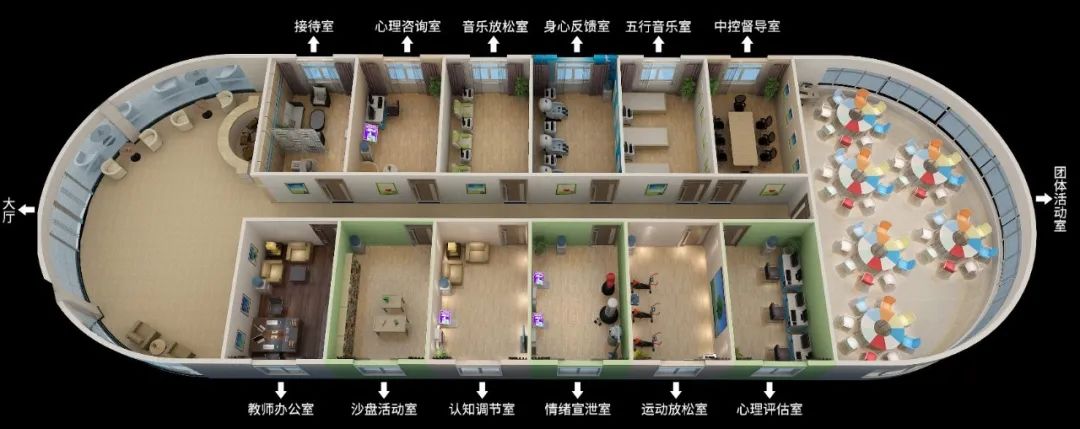 3、通用性。心理咨詢室應(yīng)面向全體學(xué)生,通過普遍開展團(tuán)體輔導(dǎo)活動(dòng),使學(xué)生對心理健康有積極認(rèn)識,使心理素質(zhì)逐步得到提高。其建設(shè)應(yīng)通透流暢,適合開展團(tuán)體活動(dòng)。