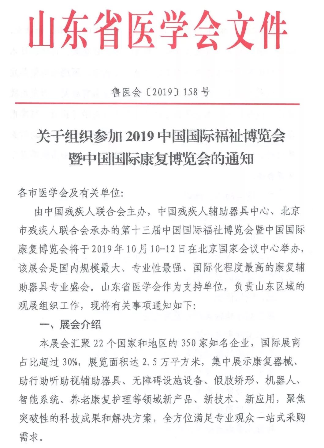 日前,支持單位山東省醫(yī)學(xué)會發(fā)布通知,組織號召省內(nèi)各市醫(yī)學(xué)會及有關(guān)單位蒞臨福祉博覽會現(xiàn)場參觀交流,以下為通知原文: