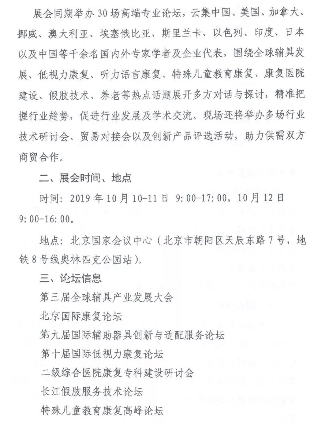 由中國殘聯(lián)主辦,中國殘疾人輔助器具中心、北京市殘疾人聯(lián)合會承辦,廣州市保利錦漢展覽有限公司協(xié)辦的2019中國國際福祉博覽會暨中國國際康復(fù)博覽會將于10月10-12日在北京國家會議中心隆重舉辦。