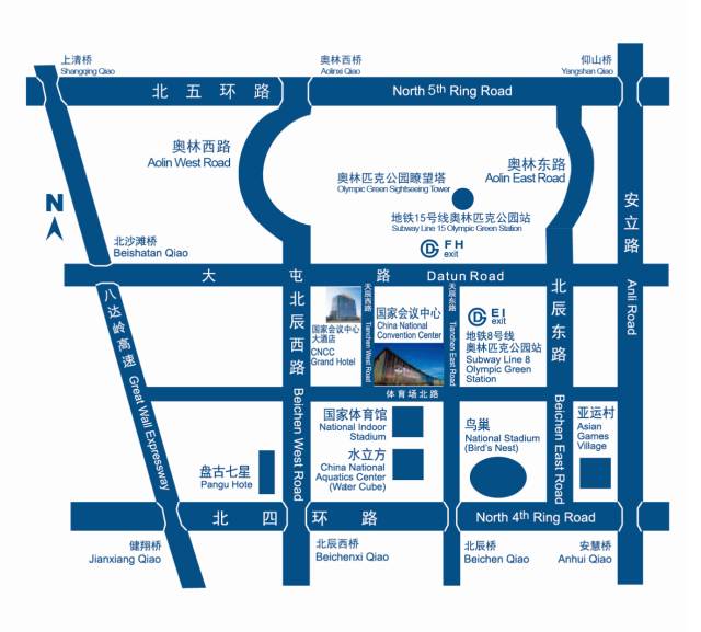 乘坐地鐵8號(hào)線或15號(hào)線至奧林匹克公園站下(E 、H、I出口)。