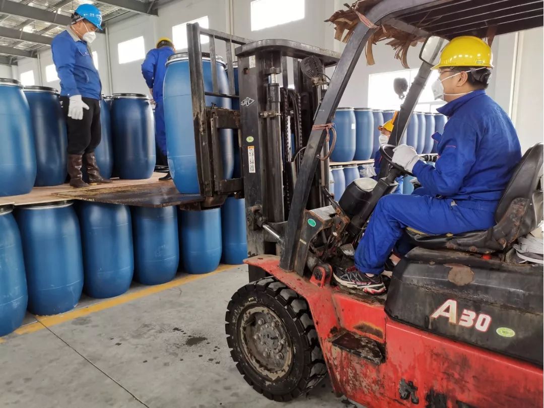 中輕化工在給客戶裝運(yùn)防疫用品