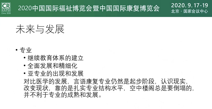 國際上目前 SLP(語言病理學(xué)家)的需求量標準是每 10 萬人中有20 名的配置。按此標準推算,中國大約需要語言治療師 26 萬名,而目前中國培訓(xùn)的能進行大腦和神經(jīng)損傷所致的語言障礙的言語治療師只有大約 1000 名,包括全國的聾兒語訓(xùn)教師,總計約 5000 余名。在水平上和數(shù)量上遠遠不能適應(yīng)大量言語障礙患者的需求。