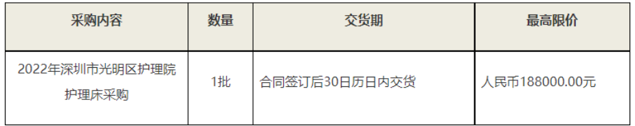 項目名稱:2022年深圳市光明區(qū)護理院護理床采購