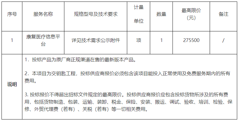 項(xiàng)目名稱:福建省漳州市某醫(yī)院關(guān)于康復(fù)醫(yī)療信息平臺項(xiàng)目的公開招標(biāo)公告