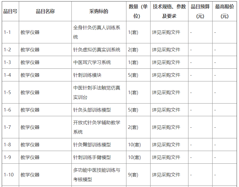 合同包1(全身針灸仿真人訓(xùn)練系統(tǒng)等17項(xiàng)設(shè)備),預(yù)算金額:2,753,400.00元