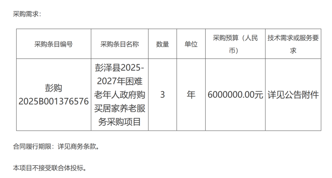 九江市人眾招投標(biāo)咨詢有限公司彭澤縣分公司關(guān)于彭澤縣民政局2025-2027年度困難老年人政府購(gòu)買居家養(yǎng)老服務(wù)采購(gòu)項(xiàng)目(編號(hào):JJRZPZ-2025GK-001)采購(gòu)公告