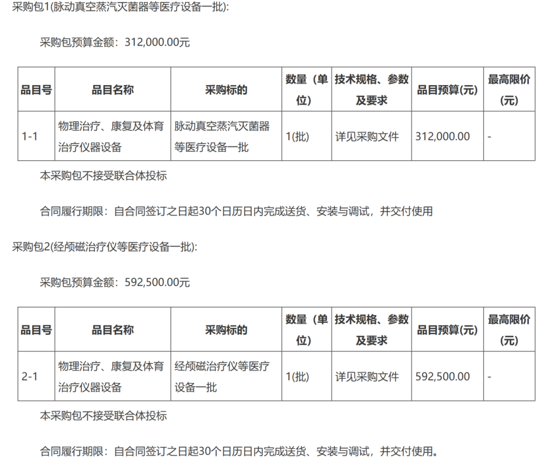 A包:康復(fù)科設(shè)備采購(gòu),B包:心血管科、兒科設(shè)備采購(gòu)