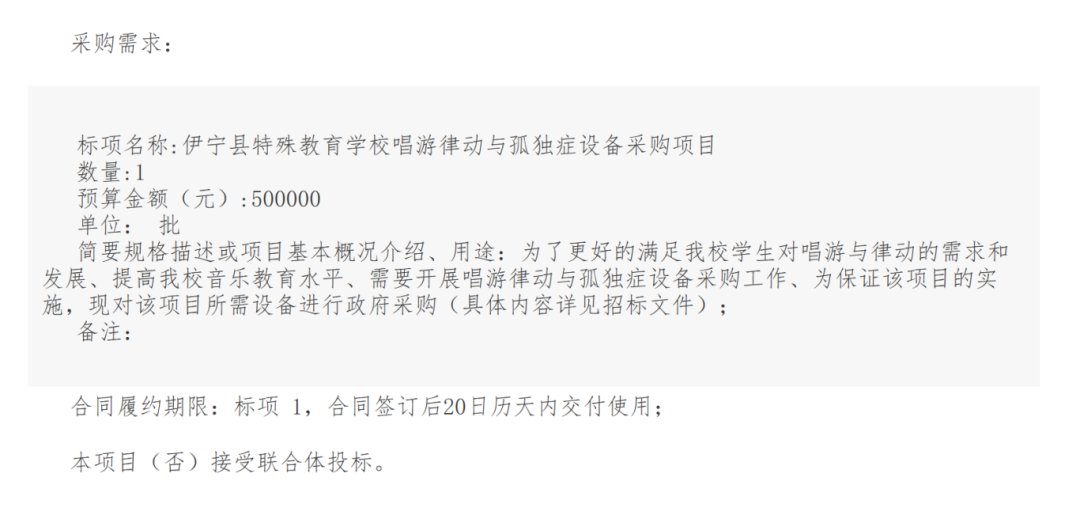 伊寧縣特殊教育學(xué)校唱游律動(dòng)與孤獨(dú)癥設(shè)備采購(gòu)項(xiàng)目公開招標(biāo)公告