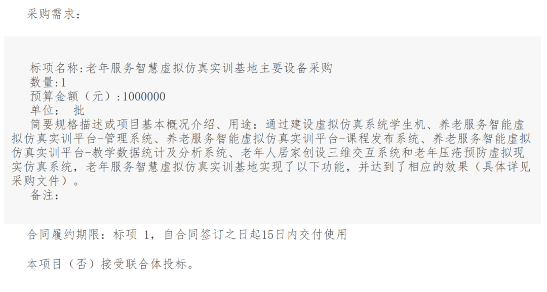 老年服務(wù)智慧虛擬仿真實(shí)訓(xùn)基地主要設(shè)備采購(gòu)公開招標(biāo)公告