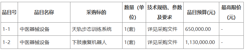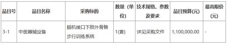 廣州醫(yī)科大學(xué)附屬中醫(yī)醫(yī)院天軌步態(tài)訓(xùn)練系統(tǒng)、下肢康復(fù)機(jī)器人、認(rèn)知語言康復(fù)訓(xùn)練平臺、腦機(jī)接口下肢外骨骼步行訓(xùn)練系統(tǒng)采購項(xiàng)目公開招標(biāo)公告