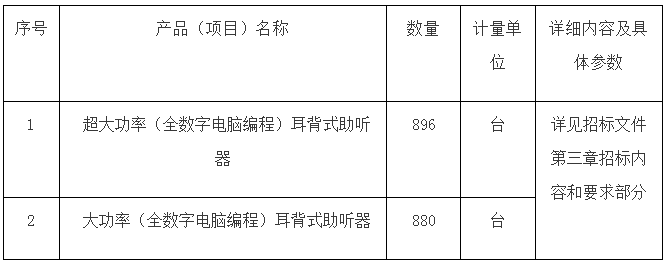 項(xiàng)目概況:本次招標(biāo)項(xiàng)目含對患者的篩查、取耳樣、耳模制作及助聽器的驗(yàn)配、調(diào)試。