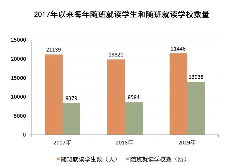 二期特殊教育提升計劃以來,廣東省隨班就讀普及水平提高,保障了殘疾學生受教育的權利。據2019-2020學年統(tǒng)計,全省特殊教育在校生52869人,其中隨班就讀學生21446人,占全省特殊教育學生總數的40.56%。