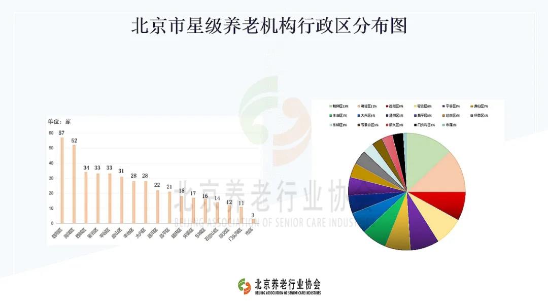 朝陽區(qū)是北京市開設(shè)養(yǎng)老機(jī)構(gòu)最多的行政區(qū),其中具備星級資格的57家,包括:五星級3家,四星級6家,三星級12家,二星級30家,一星級6家。其次是海淀區(qū),共52家。
