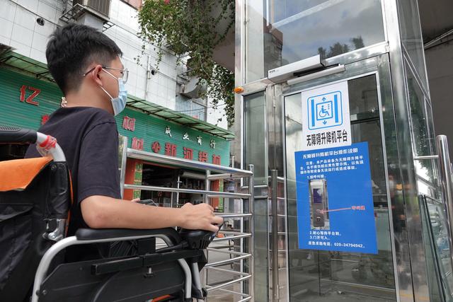 按下“呼叫鍵”,梯門緩緩打開,無(wú)障礙升降平臺(tái)將殘障人士小方送上過(guò)街天橋。“使用體驗(yàn)很好!”作為無(wú)障礙電梯的第一位乘客,小方豎起大拇指,在試用意見表上填上了“滿意”。