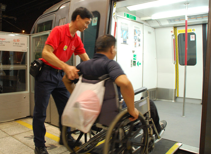 香港建設(shè)了完善的坡道、升降電梯系統(tǒng)、無(wú)障礙衛(wèi)生間等設(shè)施,取款機(jī)、公用電話也設(shè)計(jì)了使用輪椅者可及的低位設(shè)備。
