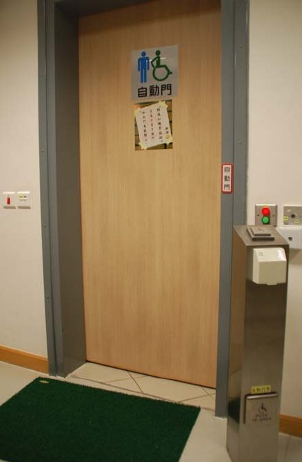 無(wú)障礙廁所的自動(dòng)門,殘疾人可以用手和腳方便的開(kāi)、關(guān)門