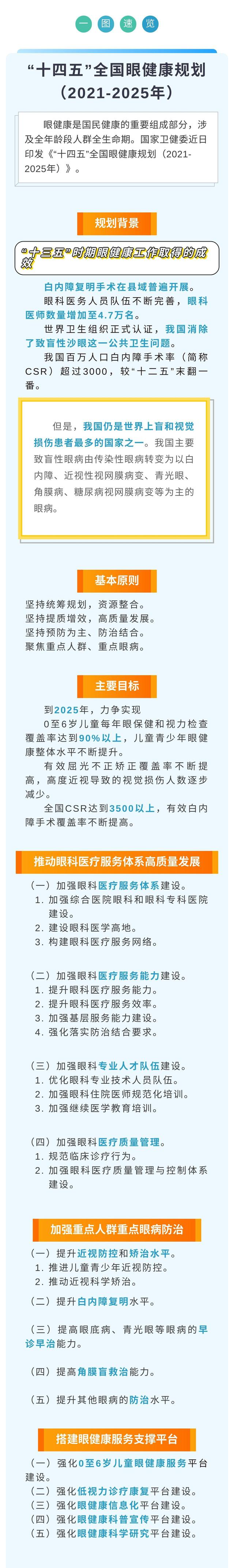 眼睛是心靈的窗戶,眼健康是國(guó)民健康的重要組成部分,涉及全年齡段人群全生命期。國(guó)家衛(wèi)健委近日印發(fā)《“十四五”全國(guó)眼健康規(guī)劃(2021-2025年)》,為“十四五”期間眼健康事業(yè)發(fā)展勾畫(huà)“路線圖”。