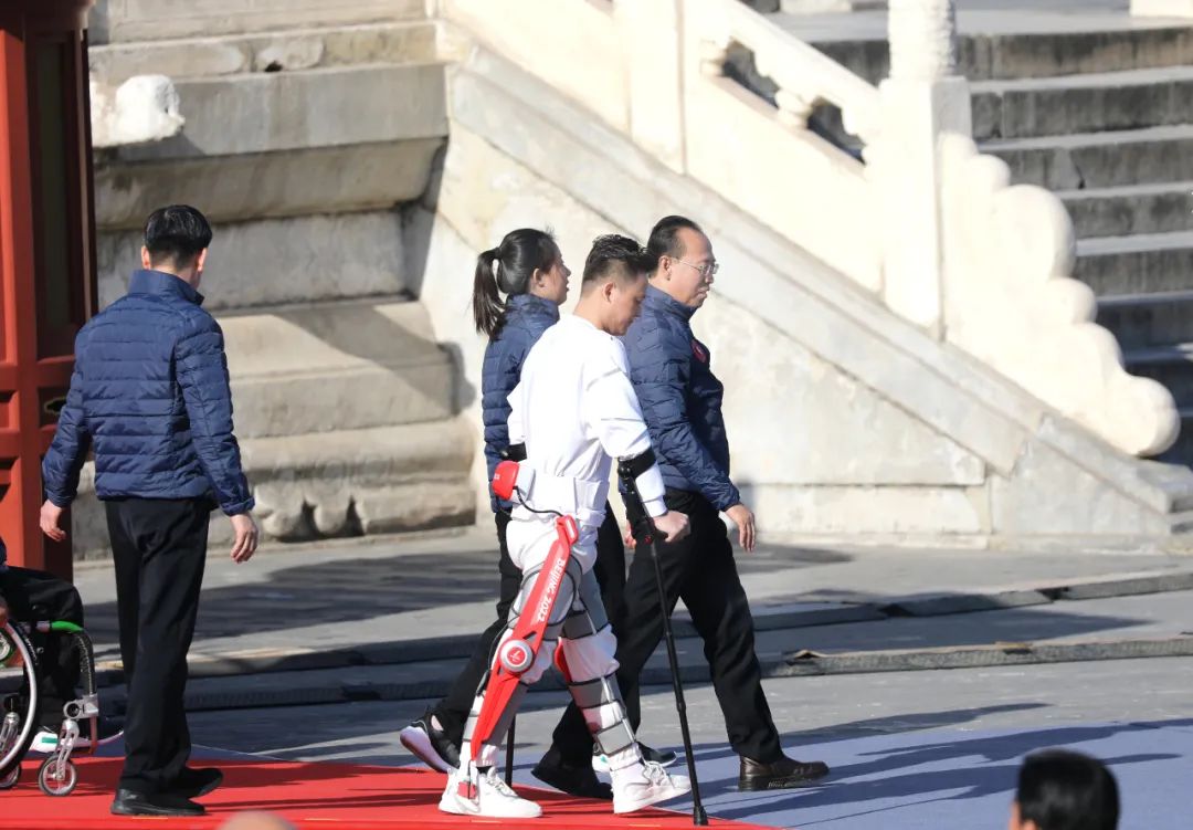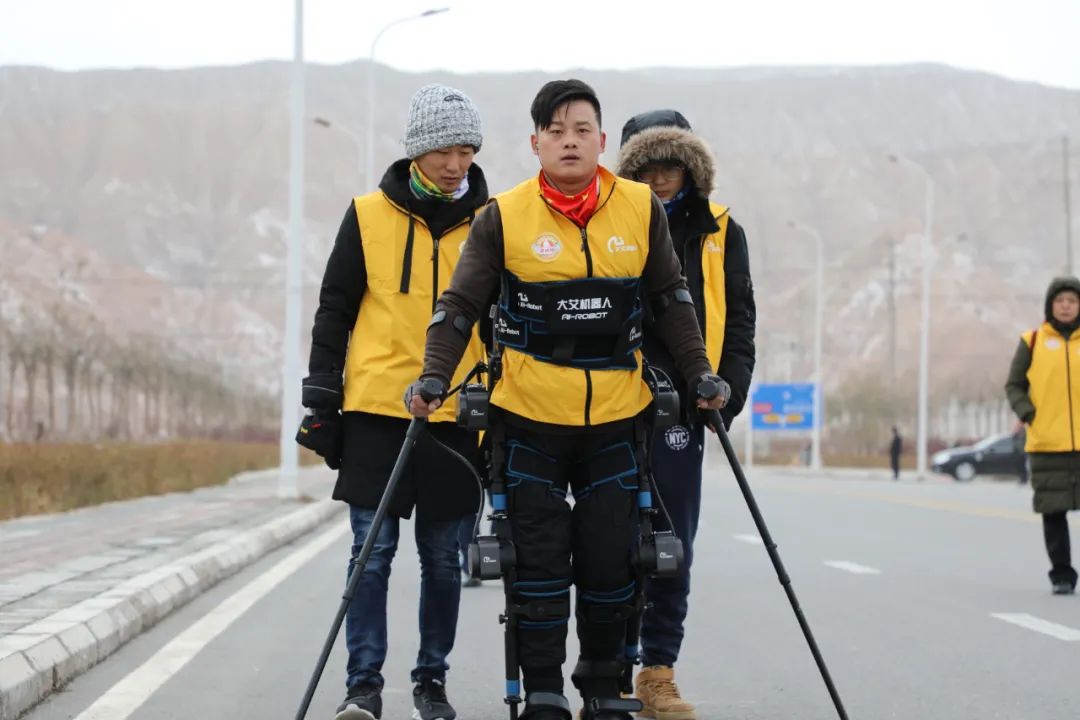 身著這款新一代大艾Ai外骨骼機(jī)器人的,是患有截癱的殘疾人優(yōu)秀代表邵海朋。2017年,邵海朋因高空墜落導(dǎo)致截癱,雙下肢失去行走功能,只能借助輪椅出行。面對不幸,邵海朋表現(xiàn)出堅韌而積極樂觀的品格,一直堅持使用大艾外骨骼機(jī)器人康復(fù)訓(xùn)練。2018年,邵海朋參加“科技助殘”穿越“一帶一路”機(jī)器人行走馬拉松公益挑戰(zhàn)賽,以9天、26小時的好成績穿戴外骨骼機(jī)器人走完全程馬拉松,打破了國外保持的15天走完機(jī)器人行走馬拉松的世界紀(jì)錄,借助科技的力量,實(shí)現(xiàn)自我超越,創(chuàng)造屬于中國人的奇跡與歷史!期間從新疆克州、西安、北京、南京跨越5000多公里,克服帕米爾高原嚴(yán)寒風(fēng)雪、長時間行走身體不適等諸多困難,展現(xiàn)了中國殘障人士自強(qiáng)不息的奮斗精神。2019年,通過不斷的康復(fù)努力,邵海朋已經(jīng)能在拐杖輔助下重新行走。