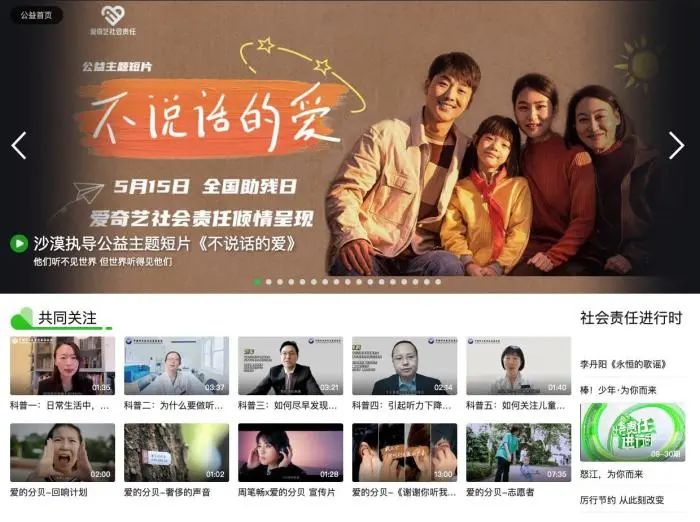 在全國(guó)助殘日當(dāng)天,愛(ài)奇藝公益頻道傾情呈現(xiàn)公益主題短片《不說(shuō)話的愛(ài)》,短片導(dǎo)演沙漠講述創(chuàng)作初衷,呼吁社會(huì)關(guān)心關(guān)愛(ài)聽(tīng)障人群;同時(shí)更有蔣龍、蔣詩(shī)萌、駱明劼、周彥辰等17名愛(ài)奇藝明星志愿者聯(lián)合發(fā)出倡議,關(guān)注聽(tīng)障群體,用愛(ài)溫暖無(wú)聲的世界。