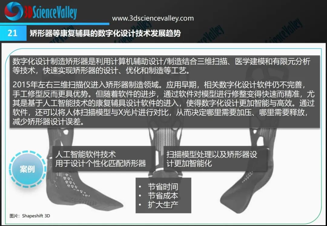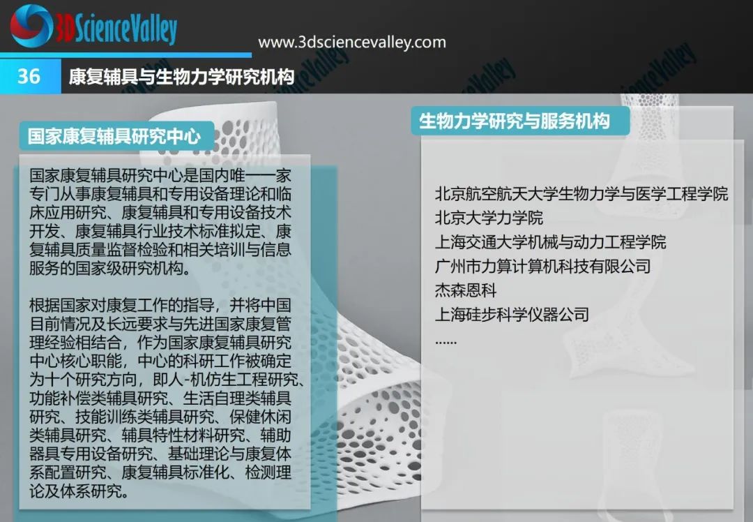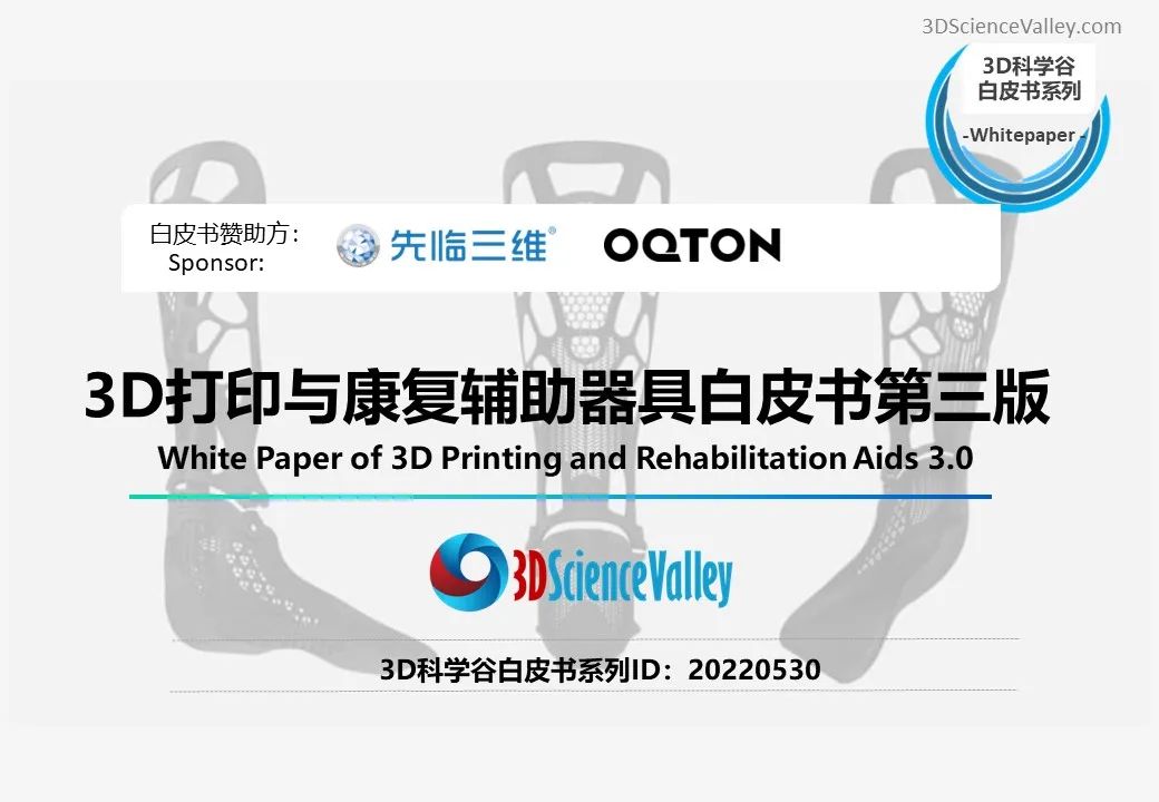 3D科學(xué)谷第三版《3D打印與康復(fù)輔助器具白皮書》,從康復(fù)醫(yī)療市場(chǎng)、多樣化的3D打印康復(fù)應(yīng)用、康復(fù)輔具設(shè)計(jì)及行業(yè)標(biāo)準(zhǔn)三大版塊,剖析康復(fù)輔具市場(chǎng)前景、挑戰(zhàn),3D打印技術(shù)與康復(fù)輔具制造的應(yīng)用結(jié)合點(diǎn),以及推動(dòng)3D打印康復(fù)輔具應(yīng)用走向深入的積極因素。