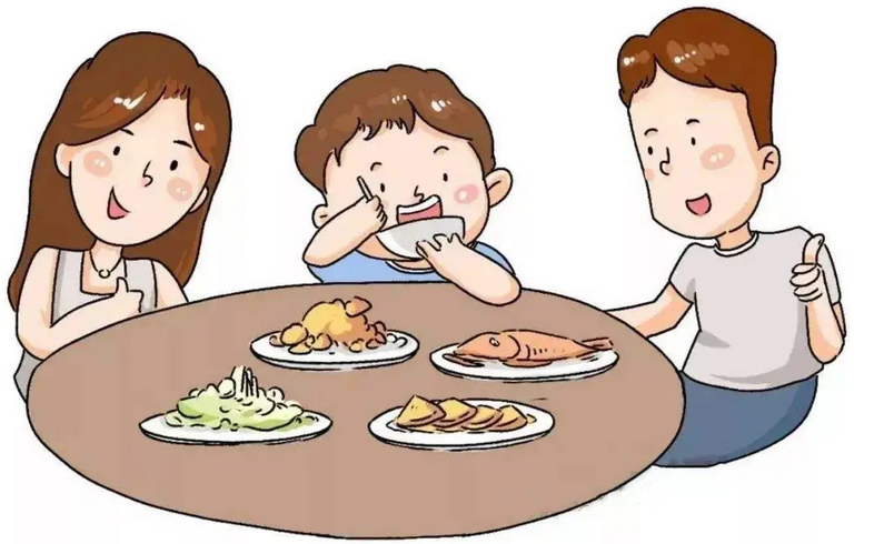 (3)進(jìn)餐時(shí),不要先將飯菜盛在每個(gè)人的盤子里或碗里,而要他們輪流取自己愛(ài)吃的飯菜。讓孩子等到輪到他時(shí),自己去領(lǐng)取。