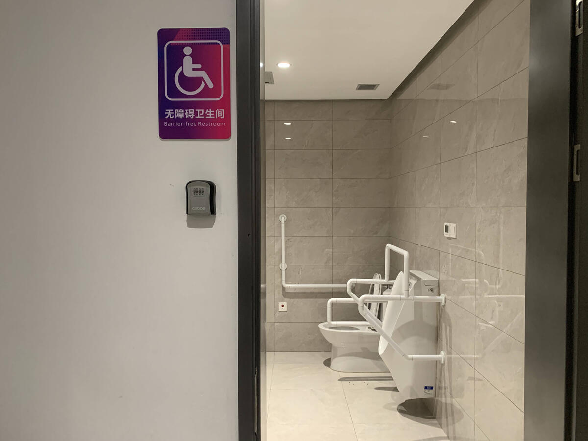 對殘疾人的關(guān)懷,還藏在細節(jié)里。今年,三人制籃球館內(nèi)的無障礙衛(wèi)生間又進行了調(diào)整,傾斜的鏡子、高度經(jīng)過多次調(diào)整的扶手和用具,都讓殘疾人和有需要的人群使用更舒心。值得一提的是,衛(wèi)生間門口還有一處不起眼的特別設(shè)置。“它是個應急保障措施,這個密碼鎖里面放著一把應急鑰匙,一旦殘疾人自己在衛(wèi)生間發(fā)生意外,工作人員就可以在外面打開門,及時進行救援。”三人制籃球館物業(yè)工作人員燕永會介紹。