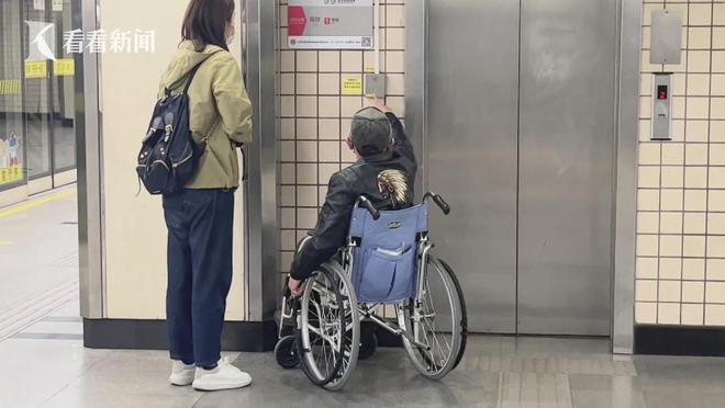 在上海軌交1號(hào)線漢中路站,記者陪同輪椅出行的張老先生前去換乘13號(hào)線,可站臺(tái)旁的無障礙電梯,大門緊閉。記者找來了工作人員,對(duì)方介紹,這部電梯上去后,直接就出了站,因此平時(shí)為了防止誤出站及逃票等情況,電梯是關(guān)閉狀態(tài),如果像老張這樣確有使用需求的,呼叫工作人員后,他們會(huì)前來手動(dòng)打開。