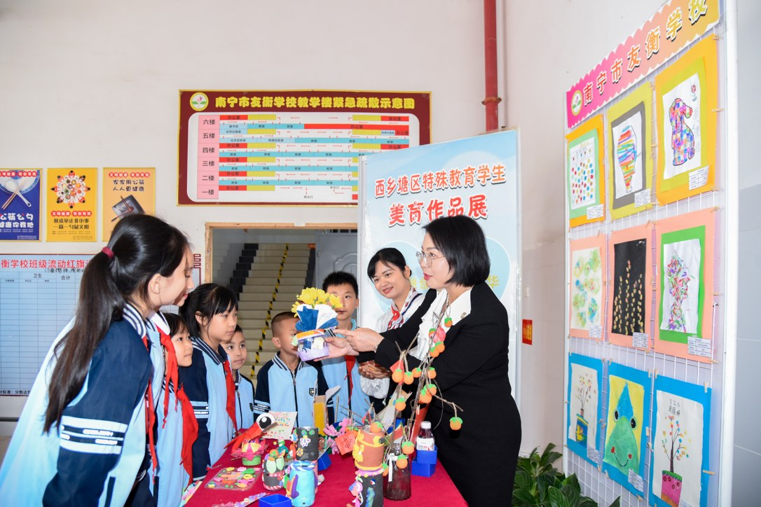 學(xué)生參觀西鄉(xiāng)塘區(qū)特殊教育學(xué)生美育作品展。