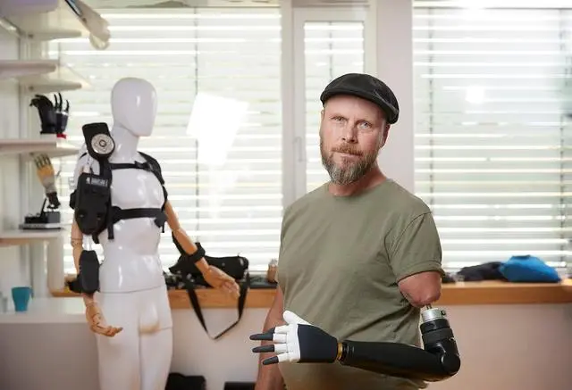在仿生學(xué)和疼痛研究中心實驗室佩戴假肢的患者。圖片來源:瑞典查爾姆斯理工大學(xué)