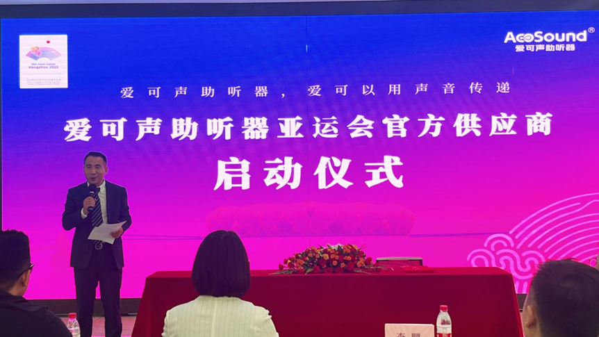 愛可聲助聽器董事長李鵬李總上臺致辭,表示愛可聲助聽器有幸成為本次體育賽事-杭州亞運會的官方供應(yīng)商,這是對我們品牌多年來持續(xù)努力的認可與激勵。我們深感責任重大,因此愛可聲將以最優(yōu)質(zhì)的助聽產(chǎn)品和服務(wù),助力本次亞運會的順利舉辦。并且向參與杭州亞運會籌備和組織工作的各級領(lǐng)導、組委會和志愿者表示衷心的感謝!