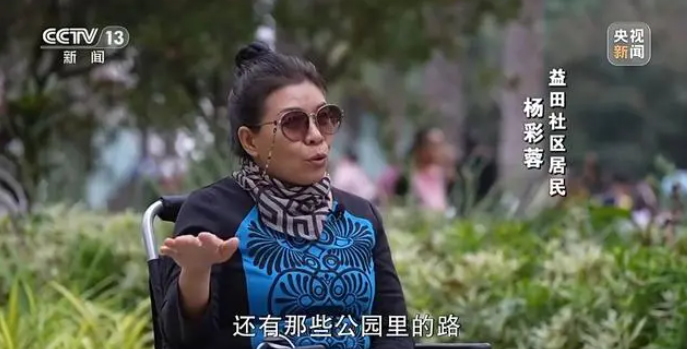益田社區(qū)居民 楊彩蓉:所有的街道小區(qū)里面的公路,還有那些公園里的路的坡道都做得很好,都能夠做到零高差,讓我們不需要人家?guī)椭那闆r下,能夠自由通暢地進(jìn)行游玩,這一點(diǎn)是感受挺不錯(cuò)的,不會(huì)造成我出來(lái)要麻煩到別人,我不會(huì)有這樣的感覺(jué),我就會(huì)覺(jué)得很自豪。