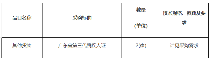 廣東省第三代殘疾人證供應(yīng)商公開選取項(xiàng)目招標(biāo)公告