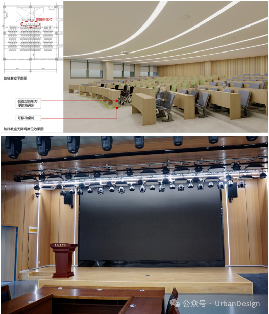 圖16 康復(fù)大學(xué)階梯教室輪椅席位和無障礙講臺(tái)