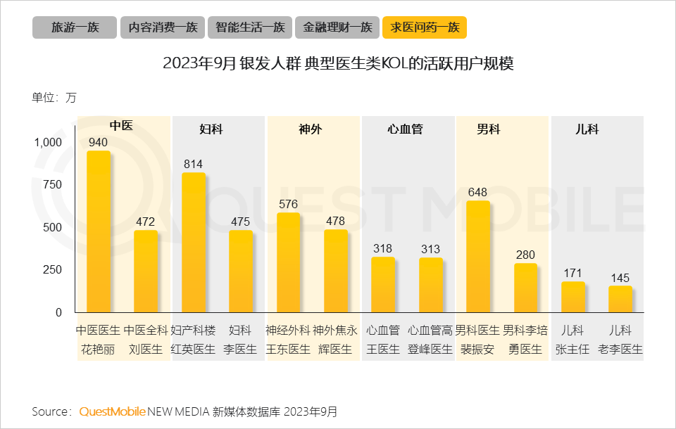 4、除了對醫(yī)療服務(wù)應(yīng)用的使用,銀發(fā)人群也會選擇通過內(nèi)容平臺的KOL來獲取廣泛的專科醫(yī)療保健內(nèi)容。