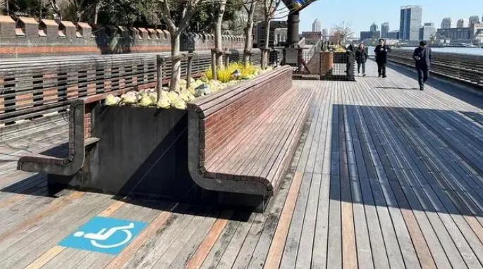 早在2022年,楊浦對(duì)外發(fā)布《楊浦濱江公共空間無(wú)障礙環(huán)境建設(shè)導(dǎo)則》。這是上海市關(guān)于公共空間無(wú)障礙建設(shè)的首部導(dǎo)則,充分考慮了聽(tīng)障、視障、肢殘等特殊人群的現(xiàn)實(shí)需求。《導(dǎo)則》對(duì)于無(wú)障礙通行設(shè)施、服務(wù)設(shè)施等布局、建設(shè)、維護(hù)都有細(xì)致的規(guī)定,有的甚至精確到毫米。
