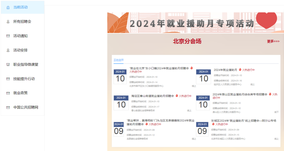 在北京市展開的就業(yè)援助月專項活動聚焦于零就業(yè)家庭成員、殘疾登記失業(yè)人員(特別是困難重度殘疾人)等就業(yè)困難人員,在北京市、區(qū)兩級線上服務(wù)平臺設(shè)置困難就業(yè)專區(qū)專欄。并且有公共就業(yè)服務(wù)機構(gòu)提供上門走訪“送溫暖”慰問活動,面對面幫助解決就業(yè)困難,為就業(yè)困難人員制定“一人一策”援助計劃,提供個性化幫扶措施。