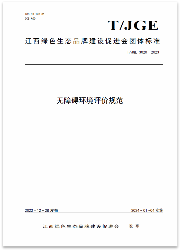 近期,《無障礙環(huán)境評價(jià)規(guī)范》(T/JGE 3020-2023)團(tuán)體標(biāo)準(zhǔn)正式發(fā)布,該標(biāo)準(zhǔn)由江西省質(zhì)標(biāo)院聯(lián)合撫州市殘疾人聯(lián)合會、中國船級社質(zhì)量認(rèn)證有限公司等單位共同參與起草。