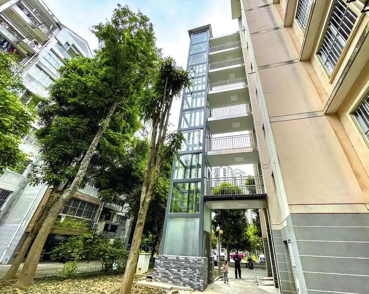 ▲南寧部分老舊小區(qū)已加裝電梯,解決老人上下樓難題