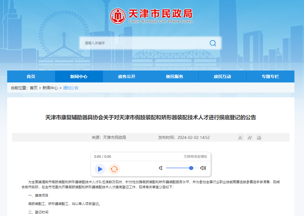 近日天津市康復(fù)輔助器具協(xié)會發(fā)布公告,在全市范圍內(nèi)開展假肢裝配和矯形器裝配技術(shù)人才摸底登記工作,為全面摸清我市假肢裝配和矯形器裝配技術(shù)人才隊伍底數(shù)及現(xiàn)狀,針對性加強假肢裝配和矯形器裝配服務(wù)水平,并為參加全國行業(yè)職業(yè)技能競賽選拔參賽選手做準(zhǔn)備。