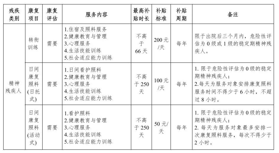2、康復(fù)資助項目和標(biāo)準(zhǔn)一覽