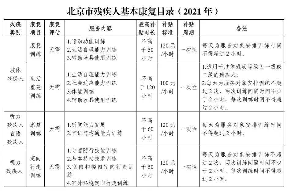 北京市康復(fù)補貼目前依據(jù)《北京市殘疾人基本康復(fù)目錄(2021年)》來執(zhí)行,具有北京市戶籍,持有《中華人民共和國殘疾人證》,年齡在16周歲及以上的殘疾人申請目錄》中的康復(fù)服務(wù)項目,可享受補貼。